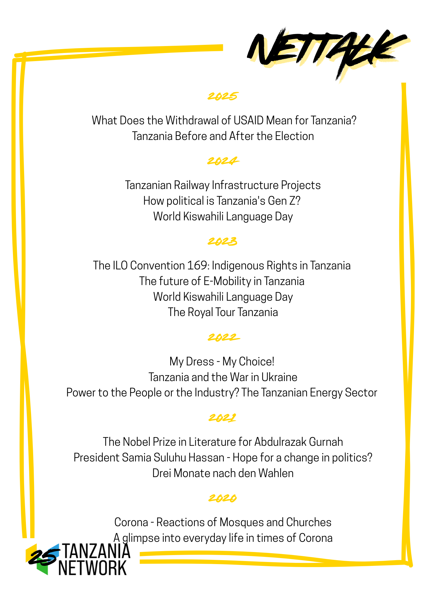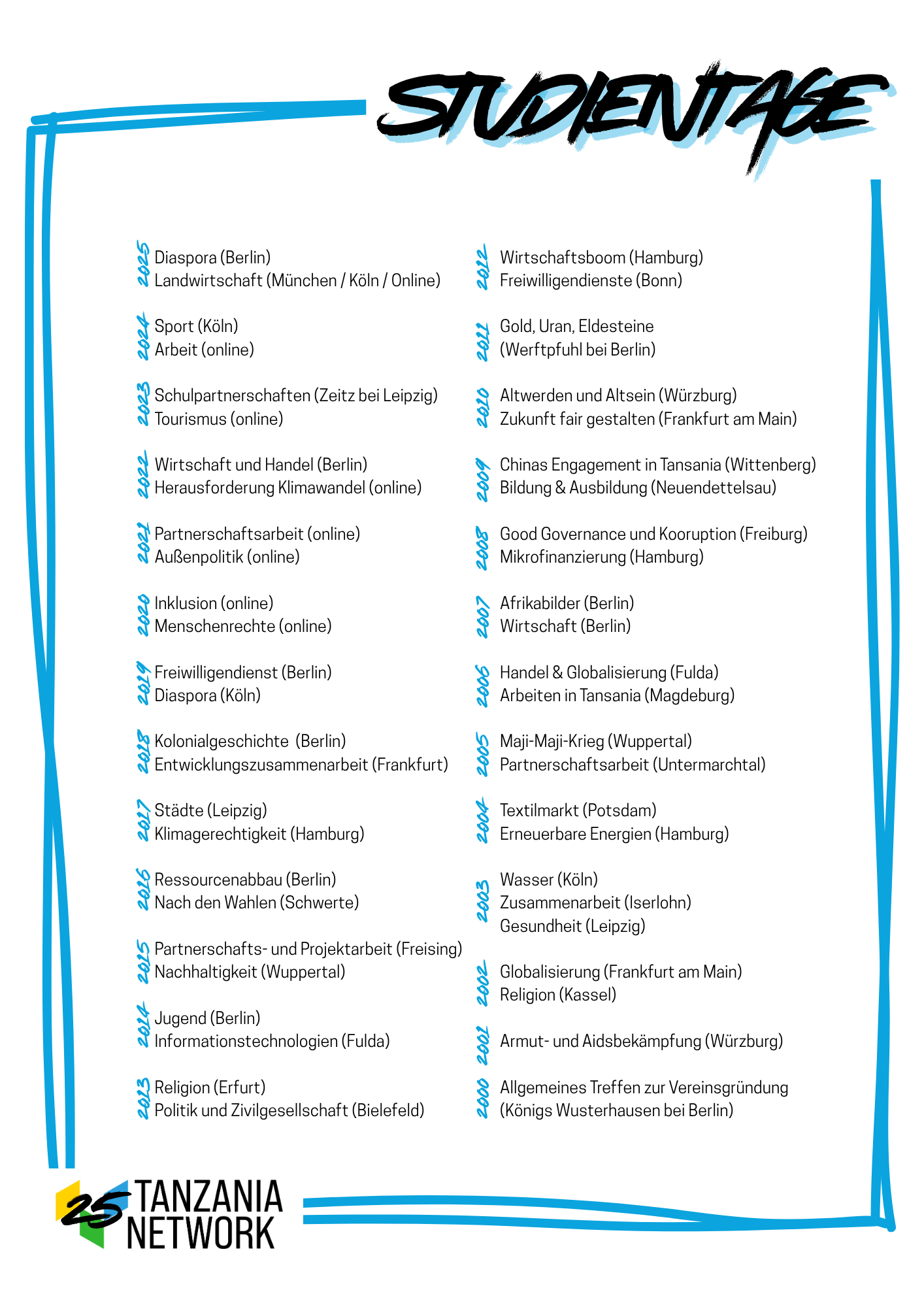 Seit 25 Jahren also baut Tanzania Network e.V. Brücken zwischen Deutschland und Tansania, fördert globale Gerechtigkeit und unterstützt partnerschaftlichen Dialog und Zusammenarbeit. Unzählige Menschen haben in dieser Zeit ihren Handabdruck hinterlassen und das Tanzania Network zu dem gemacht, was es heute ist.