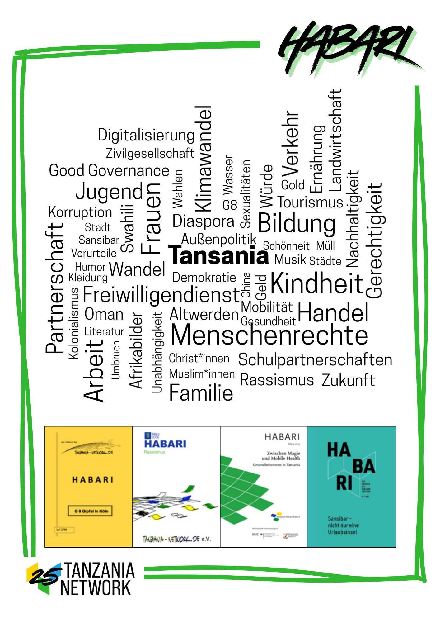 Bei einem Workshop von und mit Elisabeth Steinle-Paul blickten wir in das vergangene Vierteljahrhundert voll vielfältiger Bildungsarbeit und betrachteten Entwicklungen des Vereins sowie Veränderungen in der deutsch-tansanischen Zusammenarbeit. Mit dem vorliegenden Heft zählt das HABARI nun insgesamt 106 veröffentlichte Ausgaben – ein beeindruckender Rückblick auf unsere Arbeit im Laufe der Jahre. Zwischen 2000 und 2025 haben wir zudem 49 Studientage an 21 verschiedenen Orten in ganz Deutschland veranstaltet und damit vielfältige Gelegenheiten zum Austausch und zur Vertiefung unserer Themen geschaffen. Der Verein zählt derzeit 206 Mitglieder. Anfangs kamen diese vor allem aus dem kirchlichen Bereich; im Laufe der Zeit sind zunehmend auch Menschen aus Freiwilligendiensten, Vereinen, der Wissenschaft sowie immer mehr Tansanierinnen und Tansanier aus der Diaspora hinzugekommen. Entgegen dem Trend des Vereinssterbens haben wir jährlich Mitgliederzuwachs.